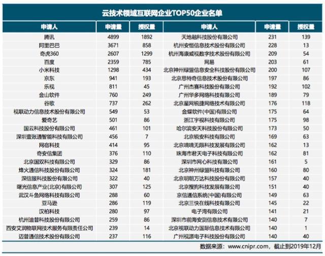 日前,知識產權出版社i智庫發布《中國互聯網云技術專利分析報告》(下稱報告)。報告顯示,截至2019年12月,互聯網企業在云技術領域的中國專利申請量共計139780件。