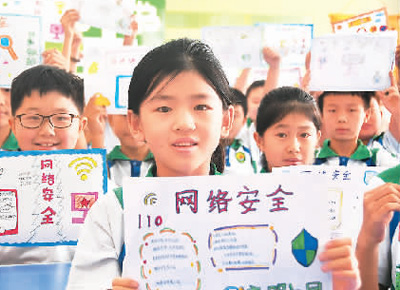 河北省邯鄲市永年區(qū)洺州小學(xué)的孩子們展示網(wǎng)絡(luò)安全手抄報。